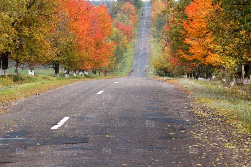 Дорога в осеннем лесу