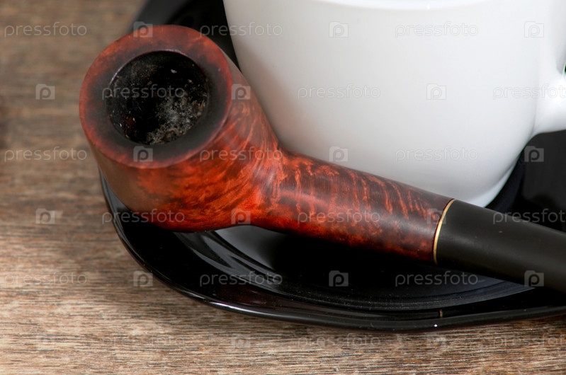 Трубка и чашка на столе