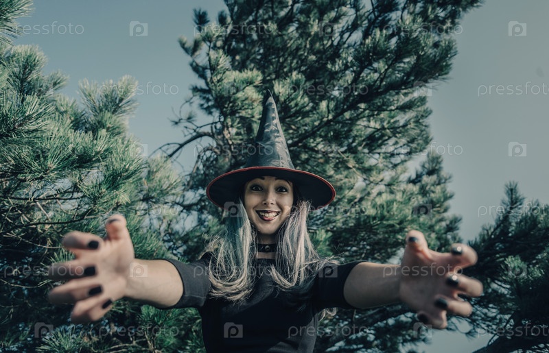 Страшная ведьма в осеннем лесу