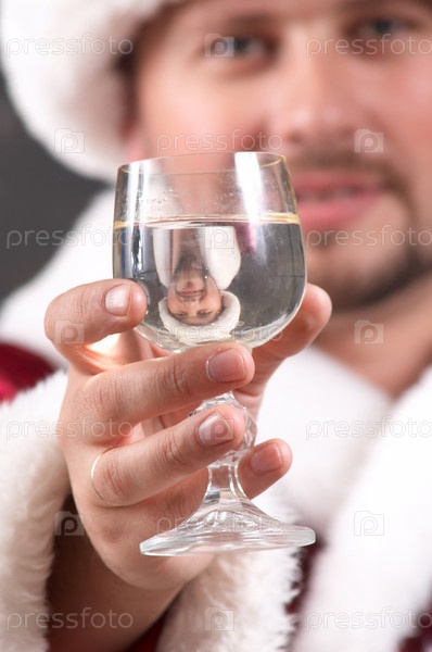 Санта-Клауса пьет шампанское
