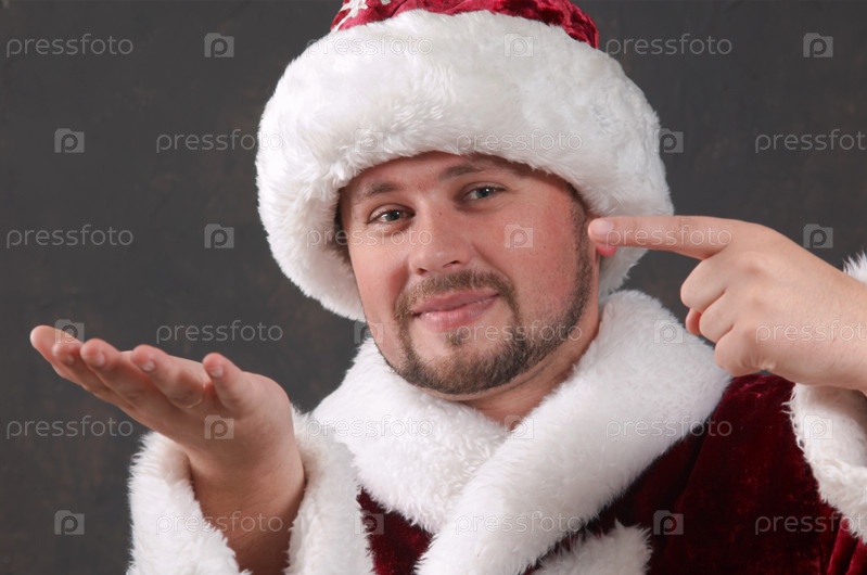 Санта-Клаус держит что-то воображаемое на руке