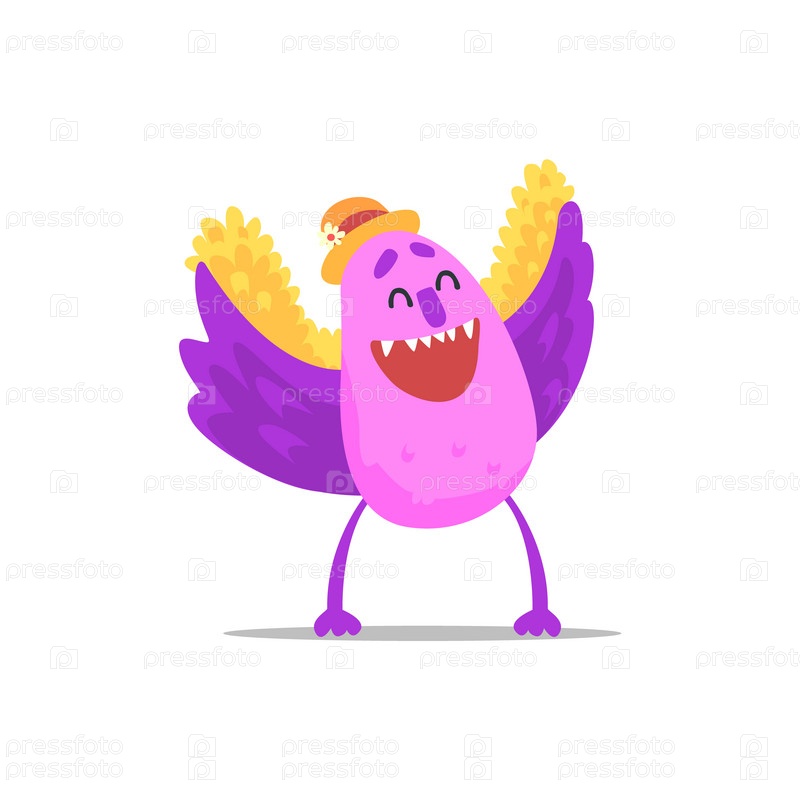 Счастливый фиолетовый монстр с крыльями