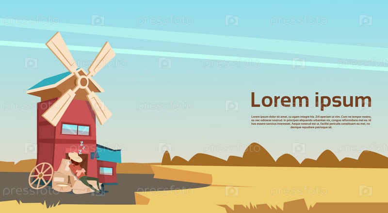 Фермер возле ветряной мельницы