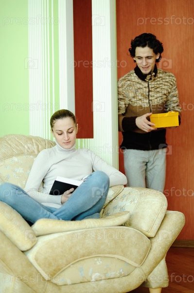 Муж дарит подарок жене