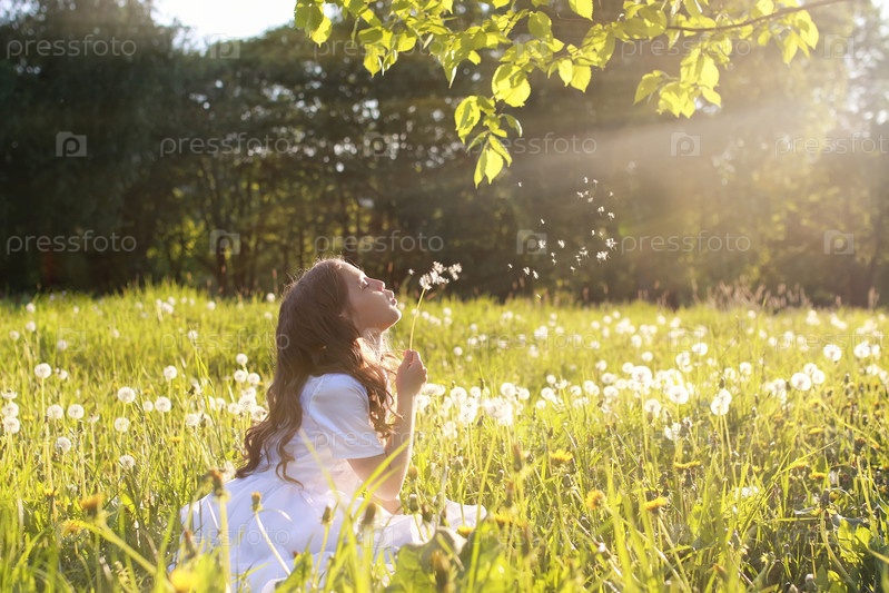 Девочка в поле одуванчиков