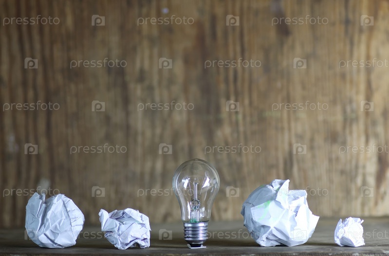Лампочка и мятая бумага