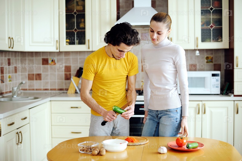 Молодая пара на кухне