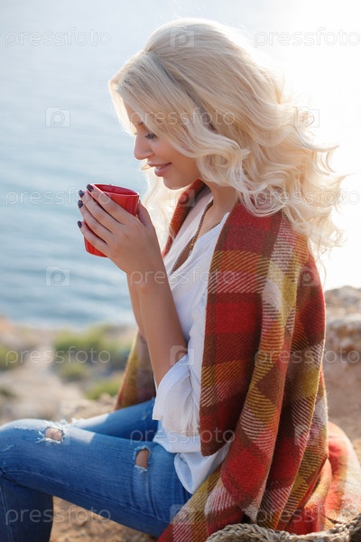 Красивая блондинка у моря