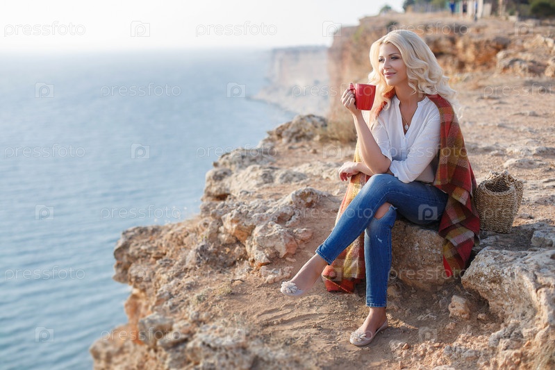 Красивая блондинка у моря