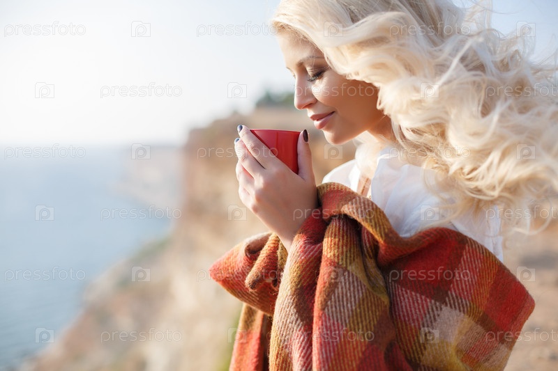 Красивая блондинка у моря