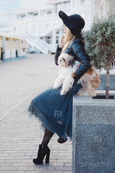 Стильная блондинка с маленькой собачкой