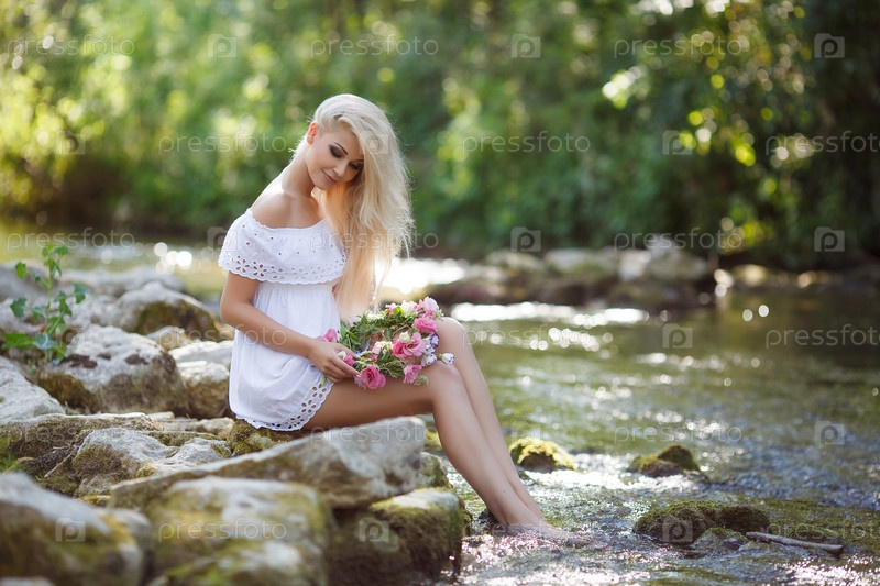 Красивая блондинка у реки