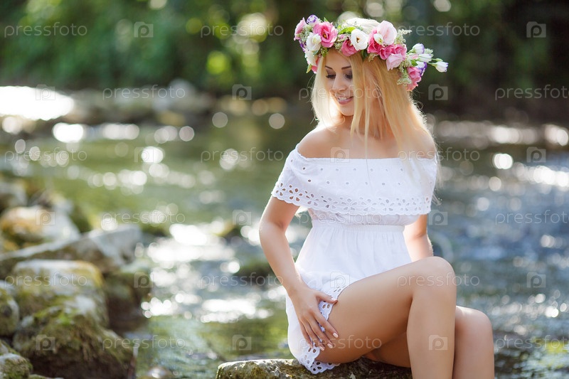 Красивая блондинка у реки