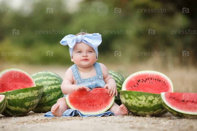 Очаровательный малыш с арбузами