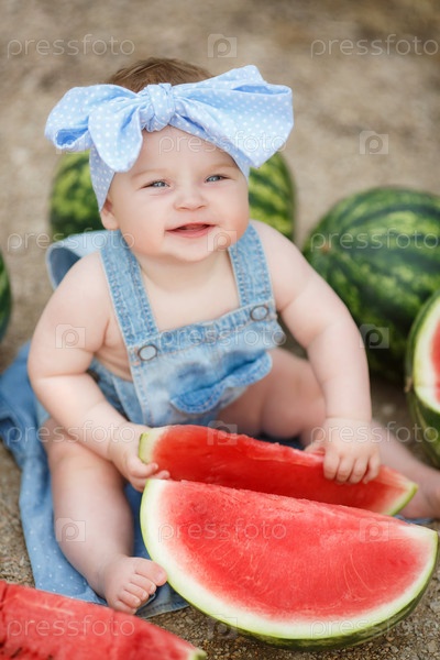 Очаровательный малыш с арбузами