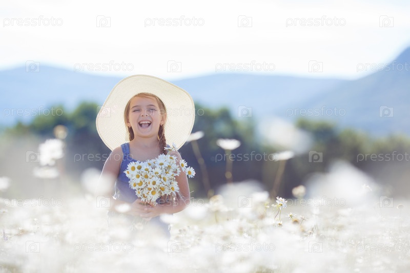 Очаровательная маленькая девочка на поле цветов