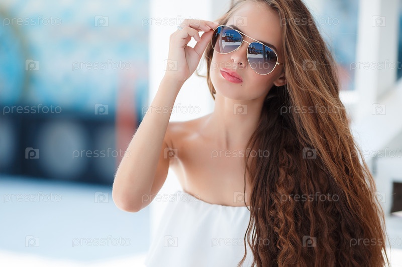 Красивая брюнетка в городе