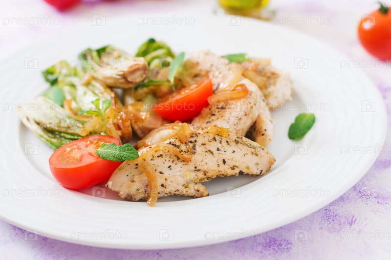 Запеченный цикорий с курицей, луком и зеленью
