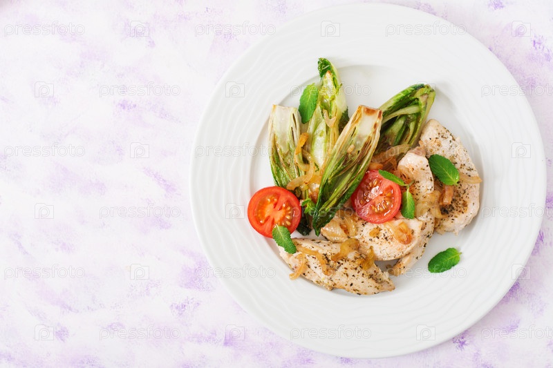 Запеченный цикорий с курицей, луком и зеленью