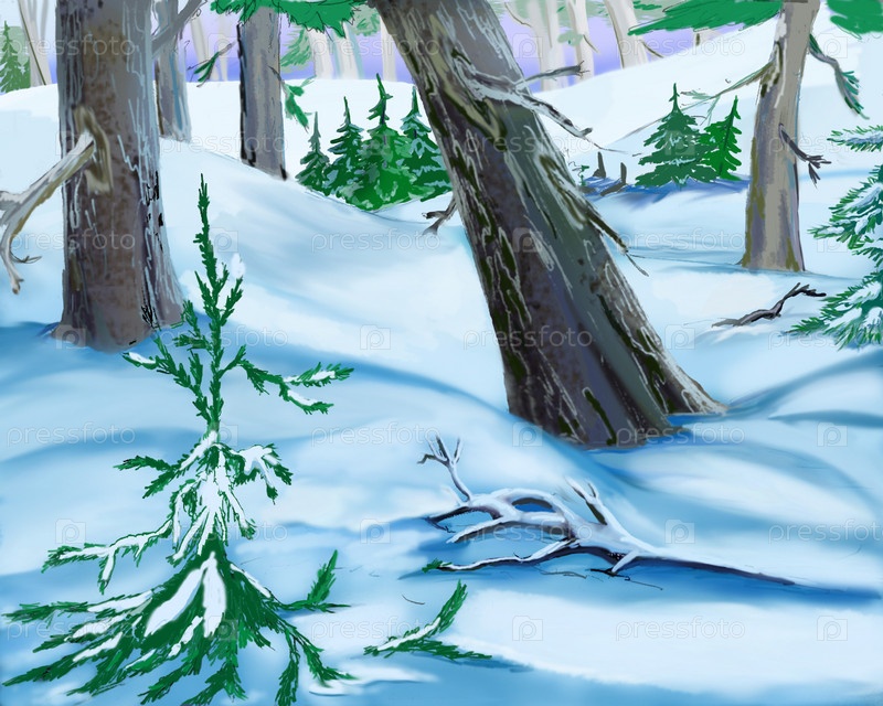 Сугробы в зимнем лесу