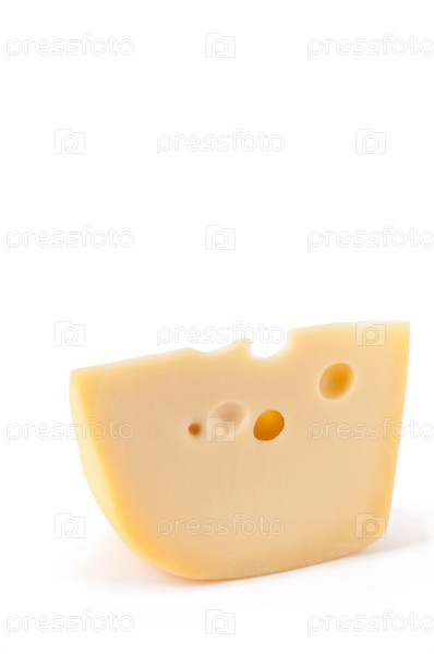 Кусок сыра Маасдам, изолированный на белом фоне