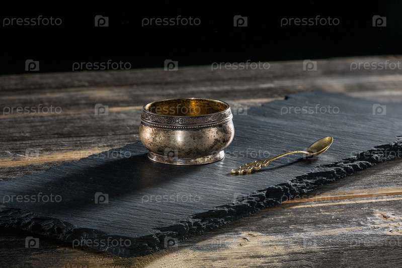 Старая солонка с ложкой