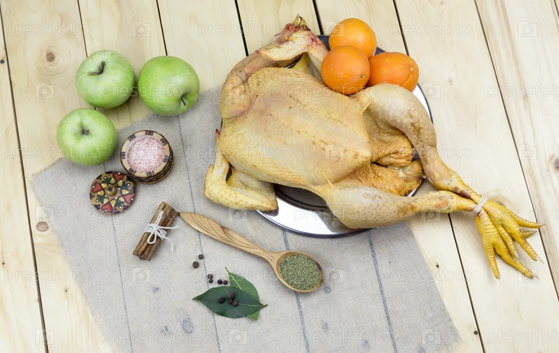 Сырая курица с ингридиентами