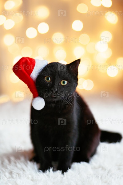 Кот в шляпе Санты
