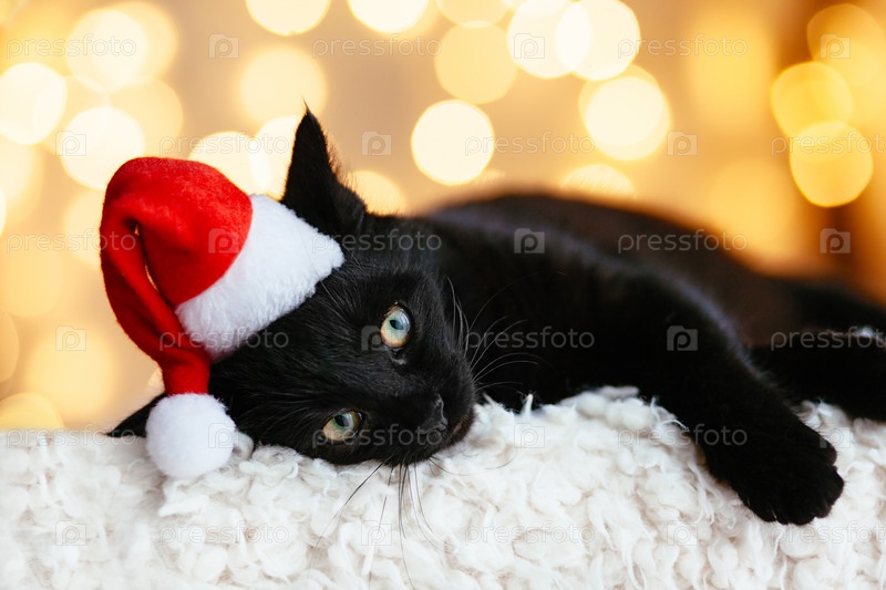 Кот в шляпе Санты