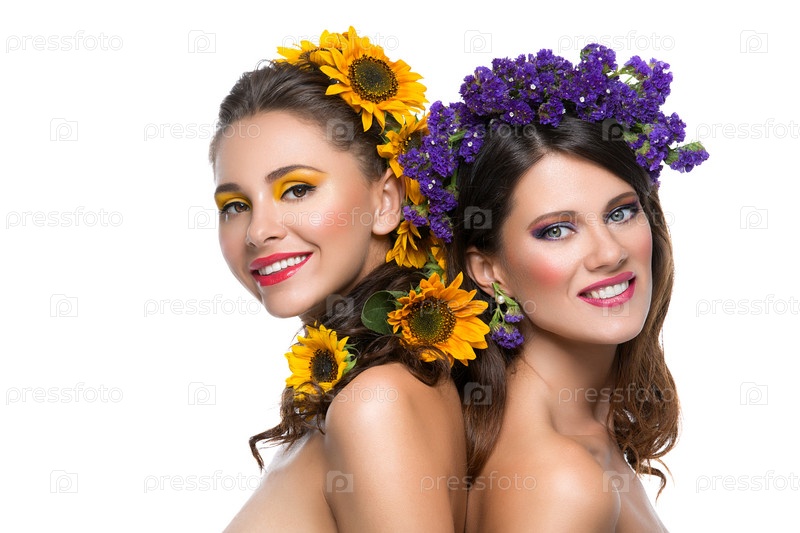 Две девушки с цветами в волосах