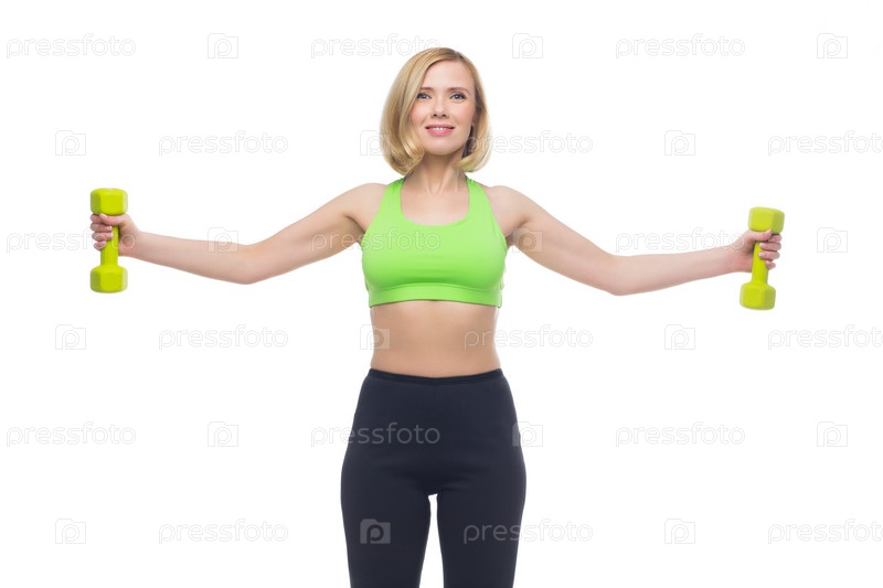 Спортивная женщина среднего возраста с гантелями