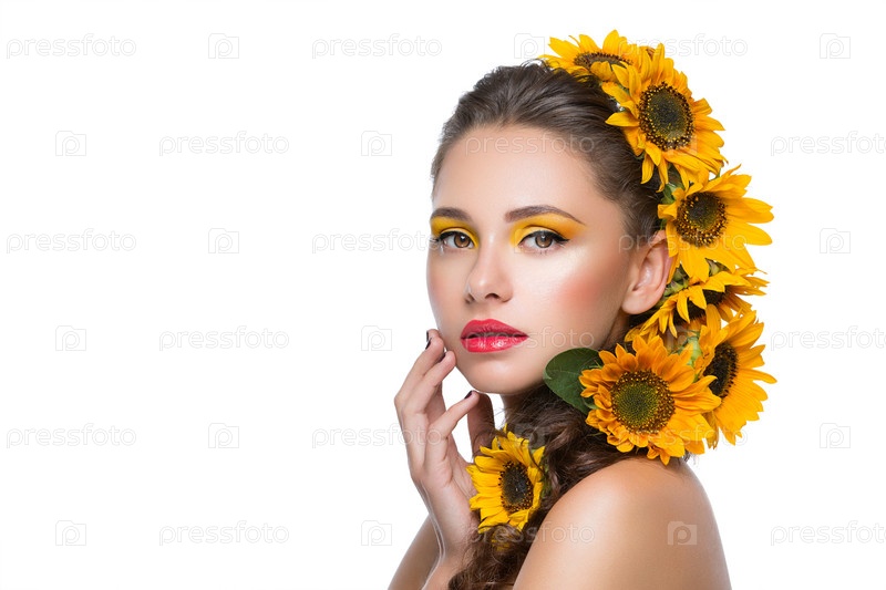 Красивая девушка с цветами в волосах