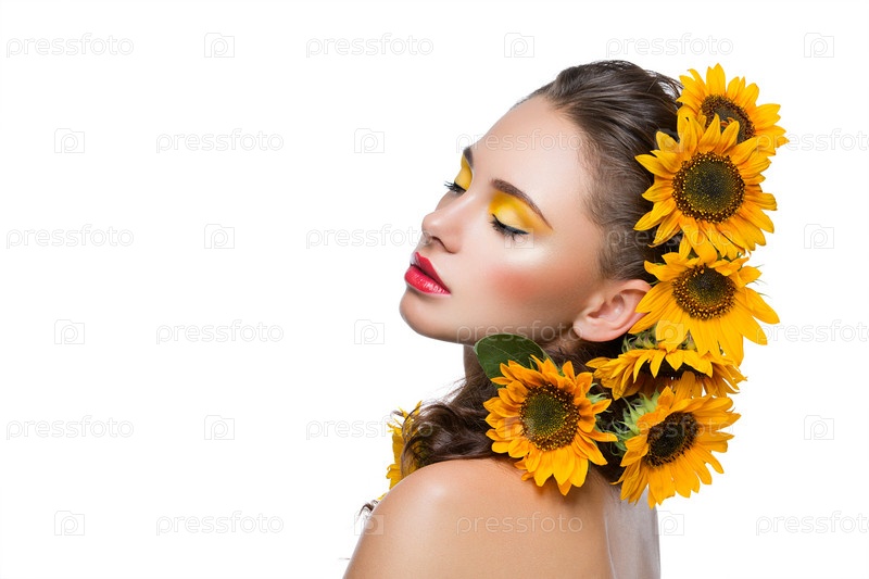 Красивая девушка с цветами в волосах