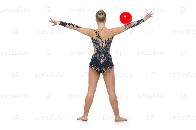 Красивая гимнастка с красным мячом