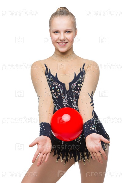 Красивая гимнастка с красным мячом