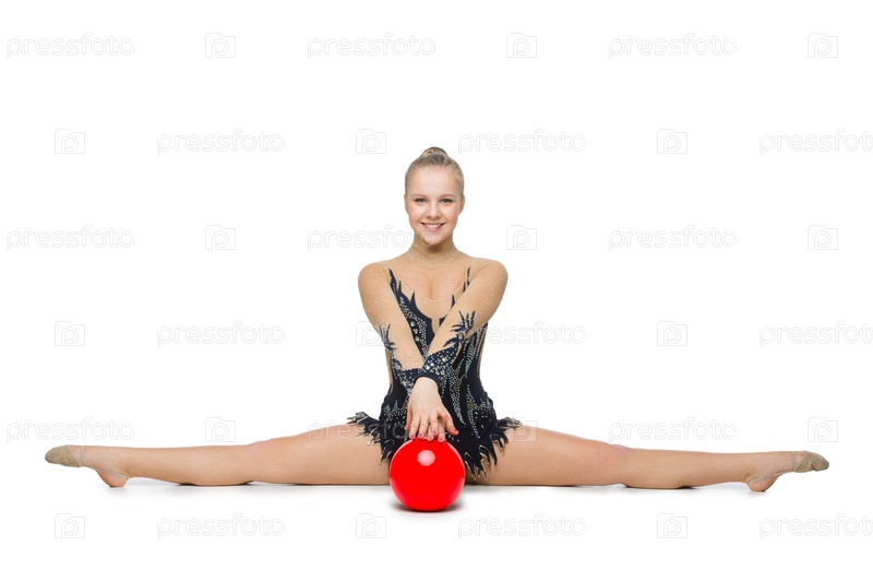 Красивая гимнастка с красным мячом