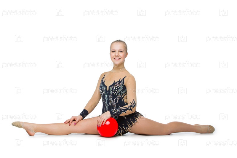 Красивая гимнастка с красным мячом