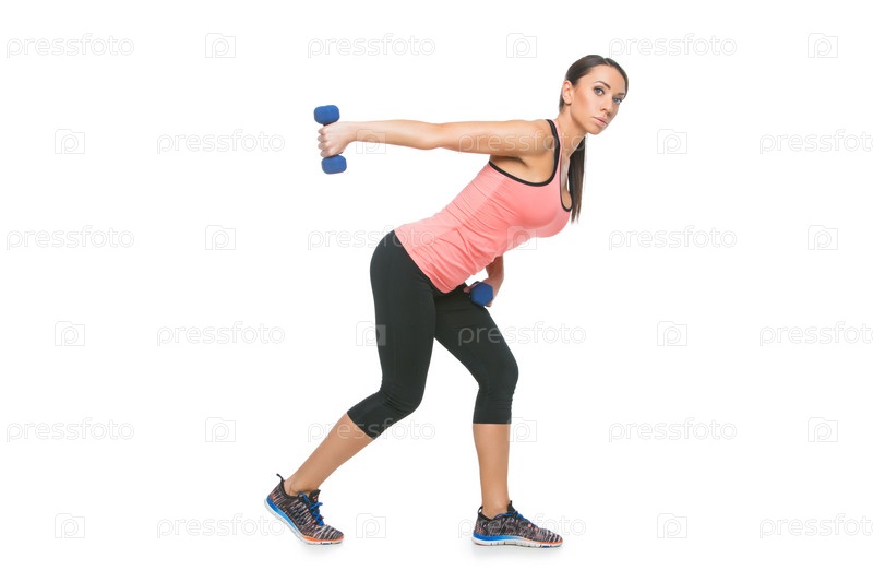 Спортивная женщина с гантелями