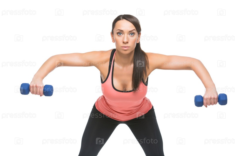 Спортивная женщина с гантелями