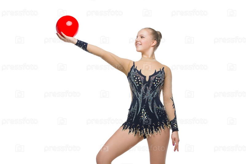 Красивая гимнастка с красным мячом