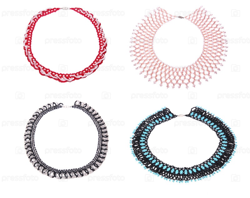 Красивые ожерелья из бисера на белом фоне