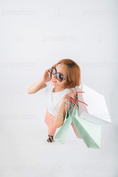 Счастливая девушка с покупками