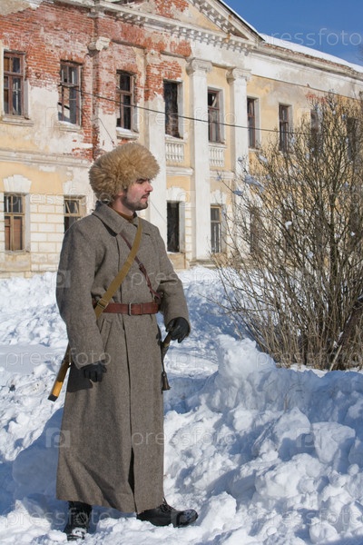 Красноармеец на фоне разрушенного здания
