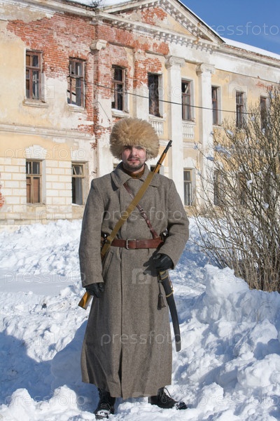 Красноармеец на фоне разрушенного здания