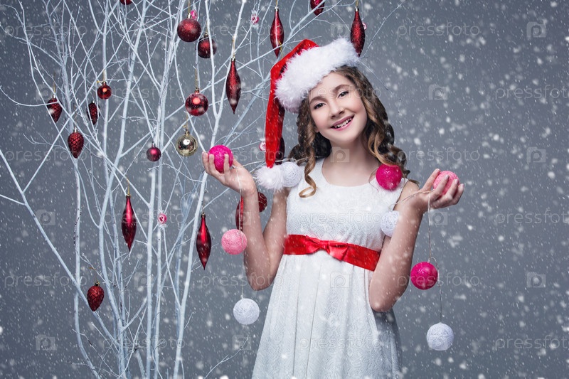 Красивая девушка с рождественскими украшениями