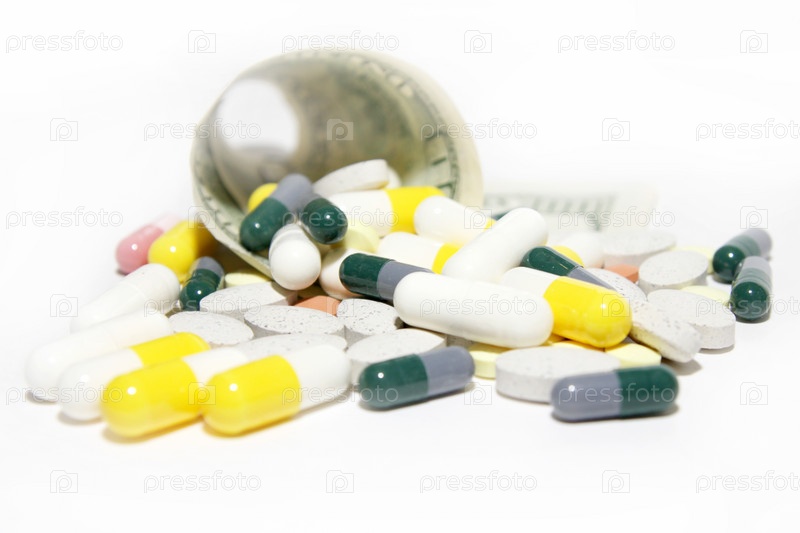 Медицинские препараты и доллары как иллюстрация общественного здравоохранения