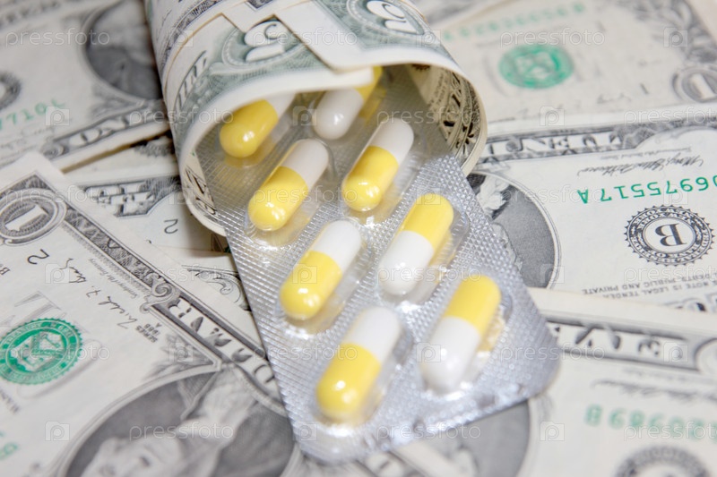 Медицинские препараты и доллары как иллюстрация общественного здравоохранения