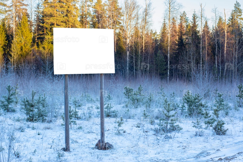 Плакат в заснеженном лесу Карелии
