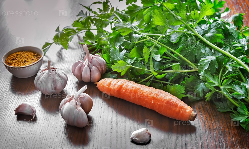 Листья петрушки, морковь, чеснок и специи