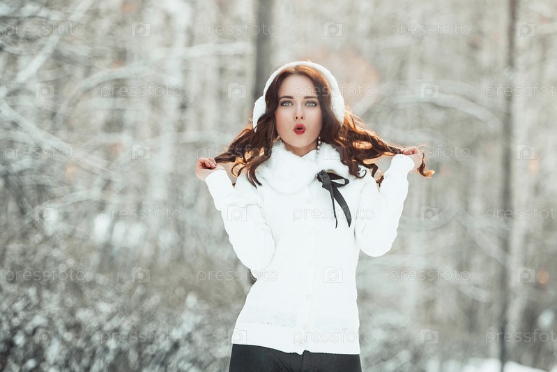 Красивая девушка в зимнем лесу